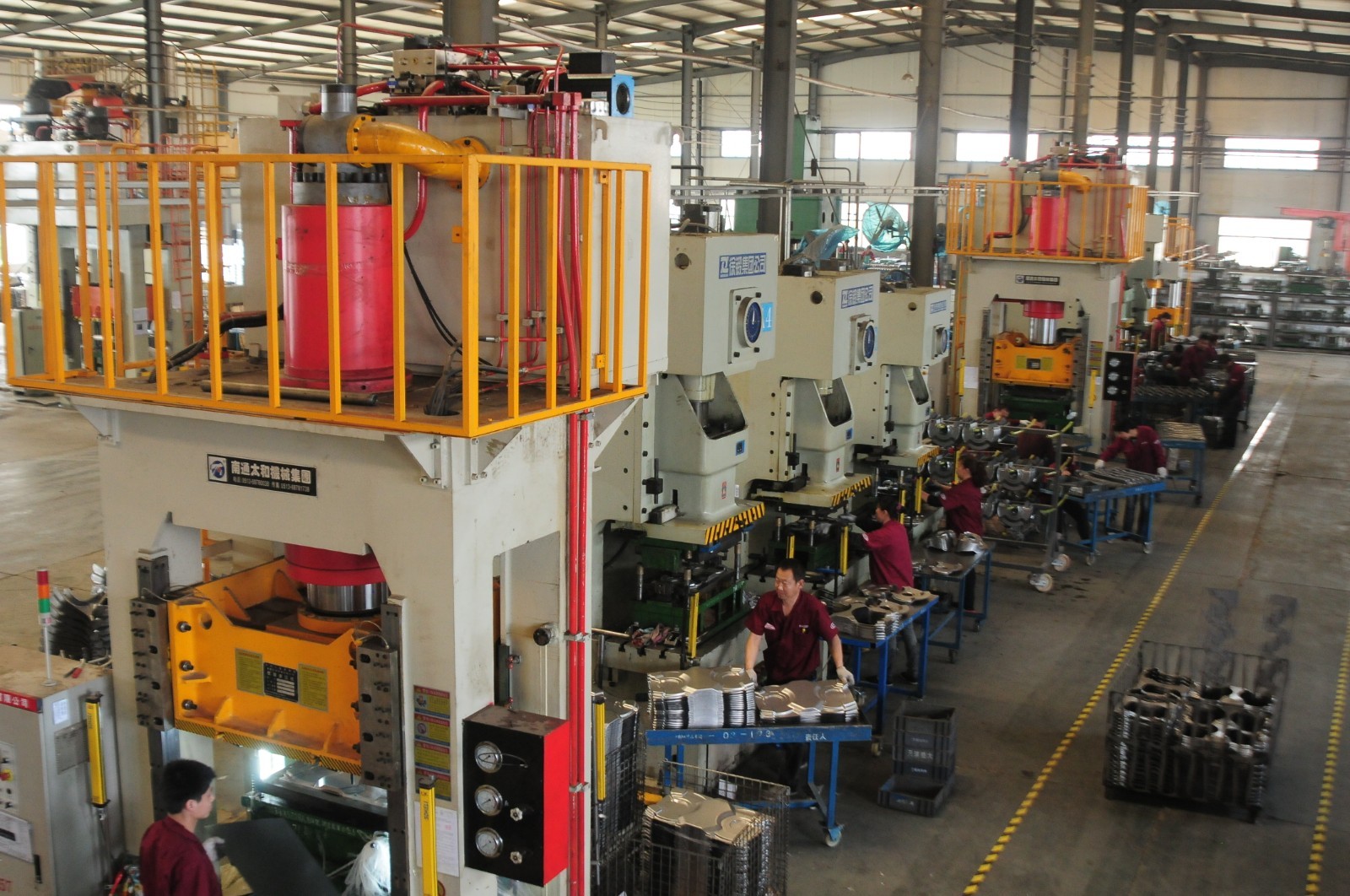公司具有模具设计制造能力(模具设计开发工程技术人员10余人,模具车间加工中心、数控铣、电火花线切割等设备齐全),具备从模具设计制造、液压、冲压、机械加工、组合焊接、热处理、检验为一体的完善的生产制造体系。实现了从原材料入厂、各工序加工制造、到成品入库发出全部由厂内完成,质量管控能力强,降低了生产成本,提高了产品竞争力。公司生产的汽车用底盘悬挂冲压件、拉伸组合件、轿车前后摆臂、发动机主横梁、油封座圈、转向节主销、后桥壳盖、防尘盘、调整垫片等产品质量稳定,供货及时。